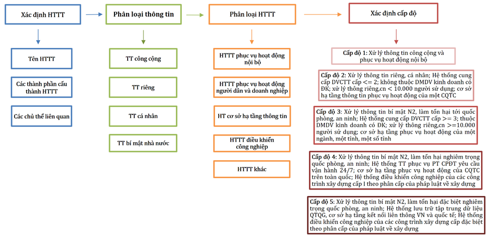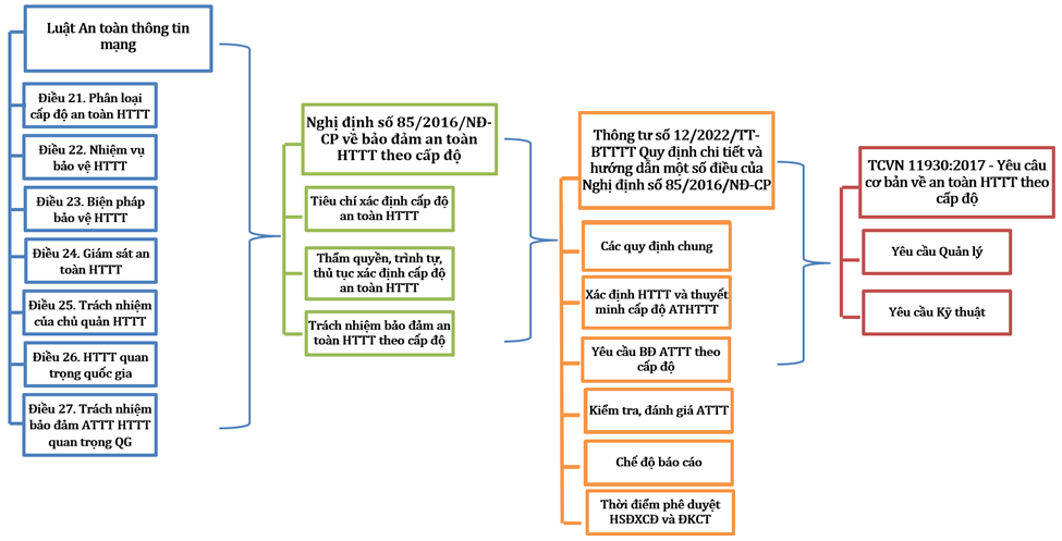 - Tiêu chuẩn quốc gia TCVN 11930:2017 về Công nghệ thông tin - các kỹ thuật an toàn - yêu cầu cơ bản về an toàn hệ thống thông tin theo cấp độ.